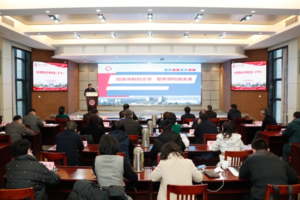 1月23日,学校召开校领导班子(扩大)务虚会,校领导班子成员和全体职能部门负责人参加会议,会议由校党委书记金佩华主持。
