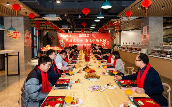 1月26日,威尼斯官网2022年留校学生年夜饭活动在东校区双创餐厅举行。校党委副书记丁敢真,办公室、学生处、研究生院、后勤服务中心等相关负责人与留校学生欢聚一堂,共享师院家宴,共贺壬寅虎年新春。