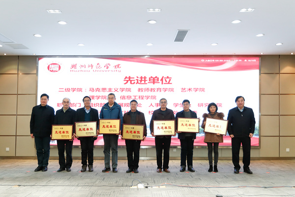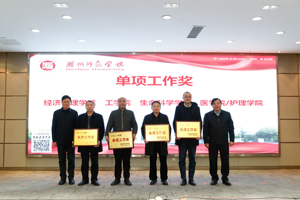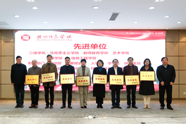 会议表彰了2021年度获奖单位,马克思主义学院、教师教育学院、艺术学院、理学院、信息工程学院、党委组织部、发展规划处、人事处、学生处、研究生院、教务处,人文社科处、校园建设处、团委、“两山”理念研究院等15个单位获评2021年度“先进单位”;经济管理学院,工学院,生命科学学院,医学院、护理学院等4个单位获2021年度“单项工作奖”;体育学院、社会合作处、计划财务处、公共事务管理处等4个单位获2021年度“工作进步奖”。