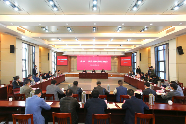 3月11日下午,学校召开二级党组织书记例会,研究部署今年党建、宣传思想文化和党风廉政建设等工作。校党委书记金佩华出席会议并讲话。党委副书记陈永华,纪委书记任伟海,党委委员、组织部长何小青,党委委员、宣传部长杜宁,党委委员、党校办主任劳士健出席,各二级党组织书记、党务部门负责人参加会议。会议由陈永华主持。