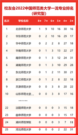 近日,艾瑞深校友会网发布2022中国大学一流专业排名,威尼斯官网21个专业被评为三星以上,其中五星3个、四星7个、三星11个,在全国师范类大学(研究型)中位列第24位。