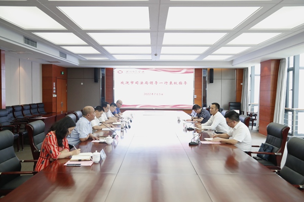 7月5日,市司法局局长夏威、副局长陈昌水,市委依法治市办秘书长马润润等一行来校调研。副校长舒志定出席,教务处、人文社科处、经济管理学院等单位相关负责人参加座谈会。会议围绕成立“沈家本法学院”事宜进行磋商。