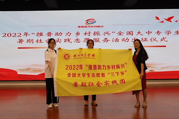 7月18日,由教育部语言文字应用管理司和共青团中央青年发展部联合发起开展的2022年“推普助力乡村振兴”全国大中专学生暑期社会实践志愿服务活动,在江苏师范大学正式启动。本次社会实践活动共收到全国大中专院校近3000支实践团队的申报材料,经教育部语言文字应用管理司专家严格评审,最终遴选出全国626所高校958支团队的近万名大中专学生志愿者团队,奔赴中西部民族地区和农村地区开展乡村推普工作。威尼斯官网国家语言文字推广基地共有5支团队入选,并派师生代表参加了本次志愿服务活动出征仪式。