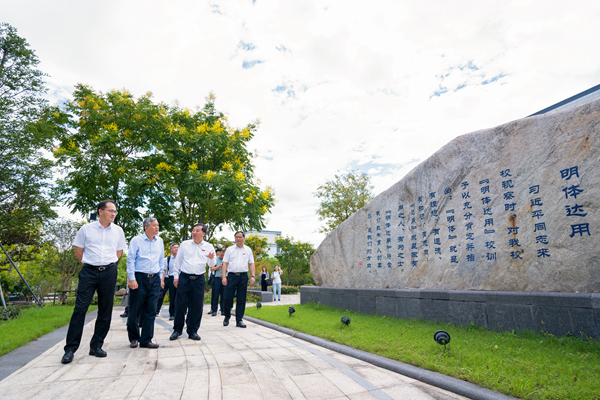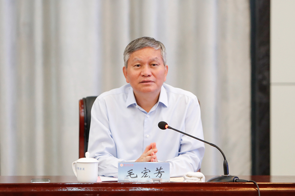 毛宏芳充分肯定了学校各项工作成绩,并对创建高水平“湖州师范大学”工作提出三点要求。一是要强化顶层设计,承担起作为湖州最高学府的使命担当,在深挖师范教育传统的基础上不断优化学科格局,明确“研究型大学”的发展定位。二是要明确方法路径,抢抓机遇、主动变革,紧紧依靠地方党委政府,不断借力、借势,坚持不对称打法,全方位调动资源打造高能级研究平台,形成人才、产业与成果集聚效应。三是要立足政策发展,继续加强内涵建设,进一步优化人才引进、后勤保障等政策措施,努力在“鲲鹏计划”人才引进等领域实现突破,为浙江打造世界重要人才中心和创新高地的战略支点贡献力量。