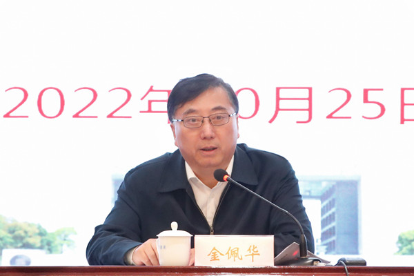 金佩华指出,党的二十大是在全党全国各族人民迈上全面建设社会主义现代化国家新征程、向第二个百年奋斗目标进军的关键时刻召开的一次十分重要的大会,是一次高举旗帜、凝聚力量、团结奋进的大会,具有划时代标志性里程碑意义。大会在政治上、实践上、理论上、战略上、制度上都取得了一系列丰硕的重大成果,对中国未来发展有着极其重要的时代价值和历史贡献。