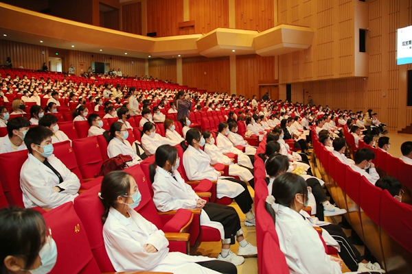 仪式最后,丁敢真对全体新生提出三点要求和希望:第一,宣誓即承诺,要求同学们敢于主动担当,努力践行生命至上、救死扶伤的使命担当;第二,厚积医学知识是基础,要求同学们要有不断创新的勇气,紧跟时代步伐,不断提高自身业务知识和能力;第三,医学之路是艰辛的,要求同学们一定要磨炼坚韧不拔的品质,保持乐观积极、健康向上的心态。