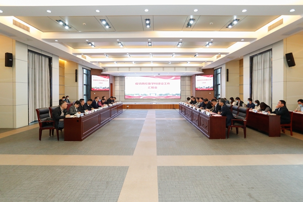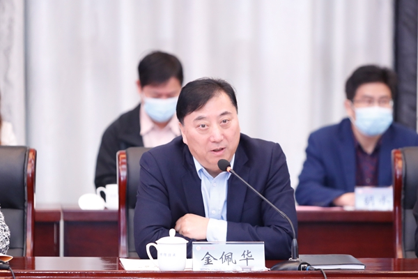 金佩华代表学校汇报了疫情防控和学科建设工作。他表示,学校全面贯彻中央、省市决策部署,认真抓好疫情防控工作,有效统筹疫情防控和各项事业发展,全力确保校园安全和师生生命健康。他指出,学校坚持以学科建设为主线,做好学科特色与地方发展战略精准对接,人才培育与产业发展精准对接,科技创新与企业需求精准对接,决策咨询与主题实践精准对接。下一步,学校将以“双百行动”计划为契机,加速推进校企共引共育“鲲鹏级”人才、共建共享高能级科创平台,共筑产业和学科双高峰,探索地方高校支撑地方支柱产业发展的“湖州模式”。