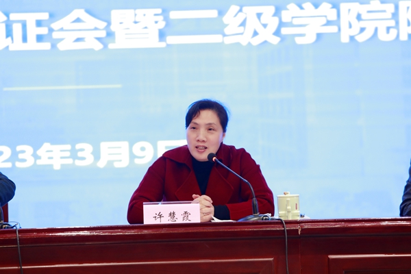会上,许慧霞分别与人事处、学科建设处、教务处、经济管理学院、生命科学学院等学院部门代表签订目标责任书。发展规划处负责人做2023年度学校发展指标分析报告。人文学院、马克思主义学院等11个二级学院院长及附属第一医院院长汇报了“学科对标、强院创大”行动实施方案和本单位2023年度工作思路、目标和举措。丁敢真、舒志定、潘音对各单位实施方案提出论证意见,对年度工作思路进行点评。