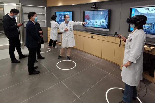 在国家儿童医学中心,考察团成员参观了医学模拟中心,并体验了医学教育领域中的虚拟仿真技术。随后,双方就研究生培养、学科建设等方面进行了深入交流,并初步达成了合作意向。