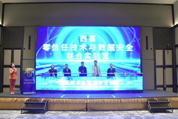 会上,楼建林与CCF抗恶劣环境计算机专委会、国际云安全联盟CSA大中华区、湖州市大数据发展管理局、西塞数字安全研究院、湖州产信科技有限公司等单位负责人共同为“西塞零信任技术与数据安全联合实验室”揭幕。