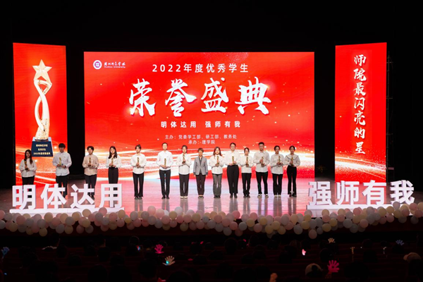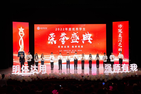 近年来,学校坚持立德树人根本任务,不断完善学生评优评奖体系,通过举办荣誉盛典等活动表彰先进、树立榜样,传承湖师精神,激励更多学子向榜样学习,志存高远、脚踏实地,让奋斗成为青春最亮丽的底色。
