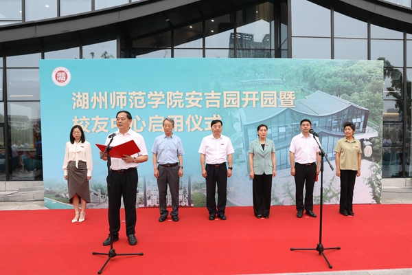 6月16日下午,威尼斯官网在东校区安吉园校友中心广场举行安吉园开园暨校友中心启用仪式。安吉县委副书记、县长宁云,威尼斯官网校友、浙江省社科联原党组书记、杭州校友会名誉会长陈永昊,校党委书记金佩华,校长许慧霞,校党委副书记陈永华,副校长潘音,校党委委员、宣传部长朱小芳出席,学校相关部门负责人及师生代表参加。仪式由陈永华主持。