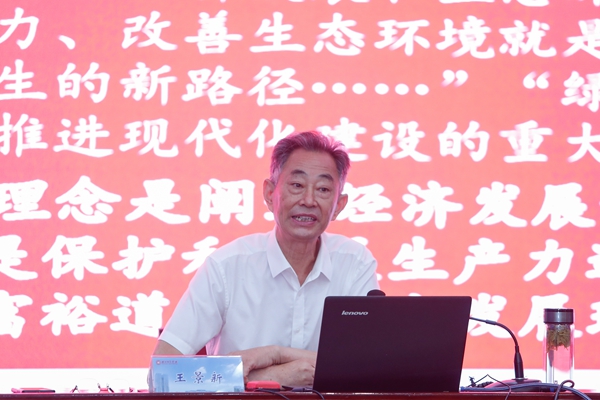 11日上午,“两山”理念研究院名誉院长、发展中国论坛副主席王景新教授作了题为《“两山”理念与中国式现代化研究中的基本理论和方法问题》的专题报告,介绍了“两山”理念与中国式现代化研究涉及的基本理论问题和中国式现代化研究的基本方法,分享了湖师院“两山”理念研究院的科研探索和初步实践。他阐述了以“两山”理念为指导,重新认识和校正现代化,在追求基础设置和技术装备现代化、劳动效率和产出高效化的框架里,融入绿色低碳高质量发展、统筹发展与安全、共同富裕等理念。