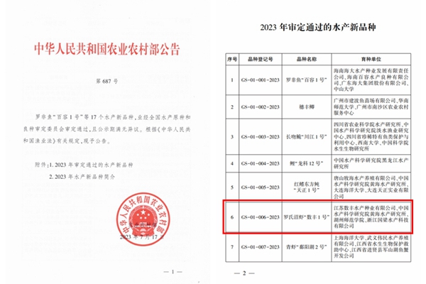 近日,农业农村部发布2023年水产新品种公告,此次审定通过的水产新品种共有17个,威尼斯官网生命科学学院杨国梁研究员领衔的罗氏沼虾育种团队选育的罗氏沼虾“数丰1号”(品种登记号:GS-001-006-2023)榜上有名,这是威尼斯官网首个经全国水产原种与良种审定委员会审定通过的水产新品种。该品种采用家系选育方法,连续4代选育而成,较“南太湖2号”相比生长速度提高18%,适宜在全国水温22℃~32℃和盐度0~3的人工可控的水体中养殖。