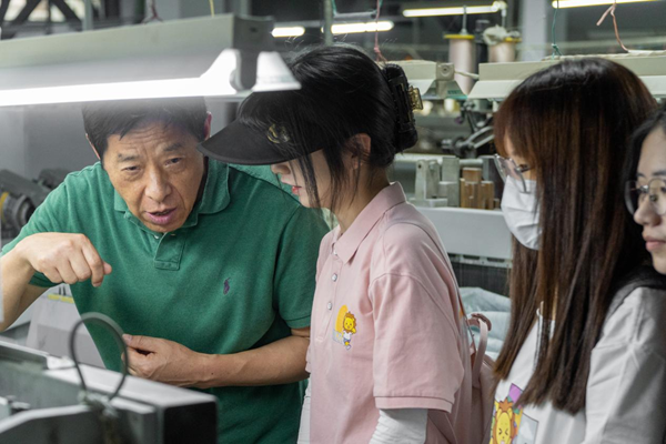 为设计出更贴合市场的草木染丝巾,实践团在孙锦华先生的带领下,参观了湖州永昌丝绸有限公司,深入丝制品生产车间,近距离接触了新型丝绸产品数码提花面料、真丝织锦画等的研发、制作过程,进一步了解了当下丝绸行业所面临的困境与发展前景。