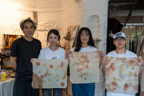 实践队员们慕名来到西山漾丝绸小镇,拜访了草木染手工艺人魏兴先生。团队以丝绸为主要布料,亲身体验了草木染中拓印、热染印、扎染等技法,制作出了精美的丝绢。草木染工艺的体验学习,让实践团成员有了崭新的灵感,他们尝试将丝绸与草木染结合,以草木染丝巾为重点开发对象,打造丝绸文化“新丝路”,助推丝绸产业与文化创意产业的融合发展。