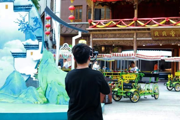 太湖的第一缕微光,飞英公园晨跑的少年;炎炎烈日下,热闹的好声音原创基地,集装箱林立的项王码头,高耸入云的东吴双塔……实践团以青年在湖城的一天为线索,通过拍摄青年眼中的湖州网红打卡地,展现了湖州的城市形象。“我们从景别、角度、摄法、预设画面等角度设计了拍摄脚本,还以地方特色与景点为参考,自行创作了宣传曲。”团队负责人张书妍侃侃介绍起他们的实践故事。