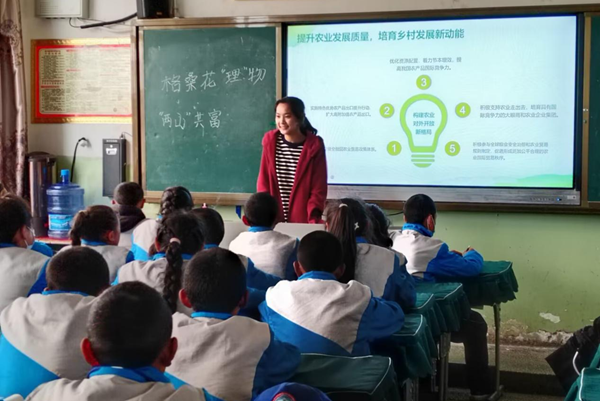 “清新的空气、绿色的矿山、清澈的太湖,初入湖州,我就感受到了它的生态之美……”在“两山”理念讲解课上,讲解员普布措姆以自身经历和生活照片为引,向藏区孩子们介绍了湖州生态文明建设的现状,展示了“两山”理念指导下湖州对绿色低碳共富之路的探索历程。