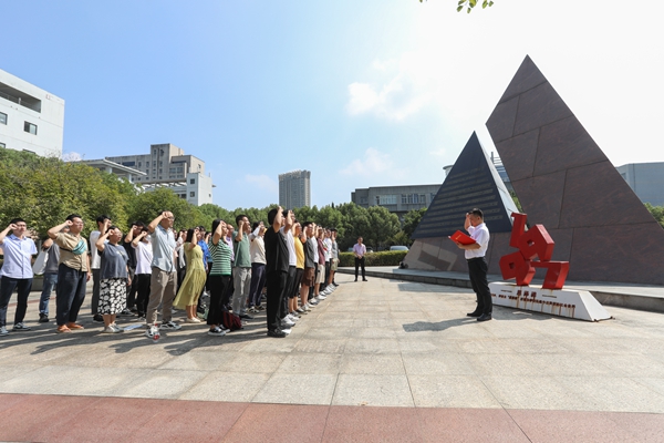 9月7日,在西校区思源广场恩泽碑前,全体新教工进行庄严的入职宣誓,仪式由“陆增祺卓越教学奖”获得者唐笑敏教授领誓。接下来,校教师教学发展中心还将对专任教师开展教学能力培养工作。