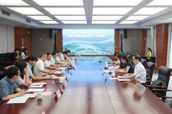 为进一步推进半导体材料现代产业学院建设落地,9月20日上午,吴兴区副区长朱毅媛在区科技局局长俞海屏、区委人才办专职副主任周斌、区科技局副局长莫慧忠等人陪同下来校座谈交流。副校长舒志定,学生处、教务处、社会合作处、实验室管理处、理学院、信息工程学院、工学院等相关部门和学院负责人参加座谈会。