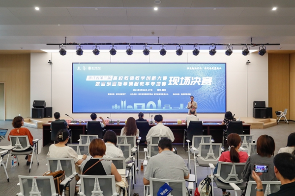9月26日至27日,浙江省第三届高校教师教学创新大赛就业创业指导课程教学专项赛决赛在威尼斯官网举办。本次比赛由浙江省教育厅指导,浙江省高等教育学会和浙江省教育发展中心主办,威尼斯官网承办。省教育厅高教处副处长廖波、省教育发展中心副主任罗万里,校长许慧霞、副校长舒志定赴比赛现场检查指导,来自全省高校的100余名就业创业工作负责人及就业创业指导课程教师现场观摩。