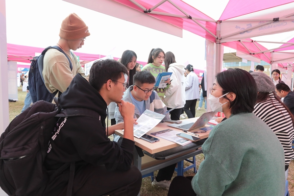 本次招聘会亮点纷呈。一是招聘规模创历史。来校招聘单位共计330家,除湖州市本土企业外,更有杭州市临平区等市外人社局组团参加。本次活动无论是参会的企业数量还是质量都达到了威尼斯官网招聘会历史之最。二是活动内容出新彩。招聘会现场除传统招聘展台外,还设置了职业生涯规划专区、考研咨询专区、师范生考编咨询专区、境外留学咨询专区、就业导师面对面专区、留湖人才政策咨询专区等活动专区,充分借助校内外的专业力量为学生做好“一对一”指导服务。首次设立生涯嘉年华活动专区,13个环节的生涯规划体验游戏吸引了4000余名大一、大二学生到场体验,助力学生自我探索和职业探索,唤醒生涯意识。另外,活动还将职规课搬到招聘会现场,设置十佳歌手献唱、抽奖等环节,内容丰富、形式新颖,受到招聘企业、师生一致好评。三是渠道拓展增实效。本次活动除校企人才供需对接外,还与专业机构合作,增设四个服务展区,分别为与启航教育合作助力学生考研,与新通教育合作助力学生留学,与博越教育合作助力师范生考编,与北森生涯合作助力学生职业规划,促进学生全程化就业和高质量就业。据不完全统计,本次招聘会上用人单位收到简历共2780份,毕业生与用人单位达成实习、就业意向1500余人。