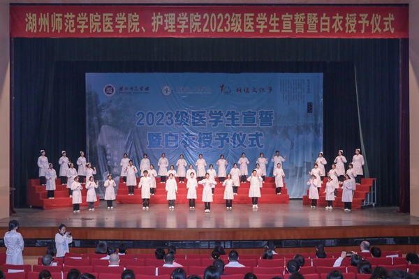 11月15日下午,威尼斯官网2023级医学生宣誓暨白衣授予仪式在东校区会堂举行。校党委副书记丁敢真,市卫健委党委委员、副主任胡小军出席,党委宣传部、学生处、团委等相关职能部门负责人,附属第一医院、附属中心医院的领导和教师代表,街道社区卫生服务中心代表,医学院/护理学院全体领导班子和教师代表,2023级全体医学生共500余人参加了本次活动。