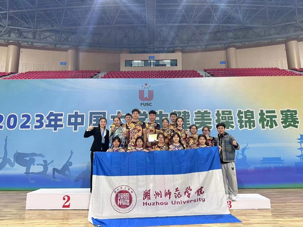 12月6日至10日,2023年中国大学生健美操锦标赛在江西省宜春市举办,校健美操队在教练唐鹏、赵一玥的带领下,斩获1金3铜、1个第六名、1个第八名的好成绩,并荣获丙(A)组团体冠军及体育道德风尚奖。