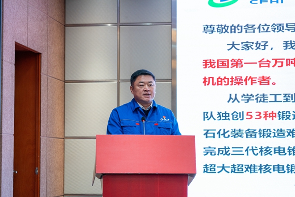 被称为大国重器“锻造者”的刘伯鸣,自1990年技校毕业加入中国一重集团有限公司,30多年来只专注于锻造。他与大家分享了自己在一次次追求极致的锻造中磨练意志、提升技能的成长故事。也自豪地表示,自己带领团队独创53种锻造方法,开发41项锻造技术,为中国赢得锻造领域的国际话语权。他用亲身经历诠释了要挺直中国制造业“脊梁”,就要紧跟时代步伐,勇于开拓创新,用非凡匠心挺起“中国制造”。