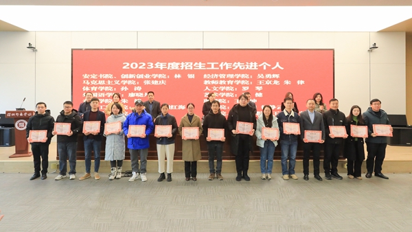 舒志定宣读表彰文件。教师教育学院、信息工程学院、工学院和医学院、护理学院被评为2023年度招生工作先进集体;理学院、信息工程学院、生命科学学院和医学院、护理学院被评为2023年度就业工作先进集体;林银等18人被评为2023年度招生工作先进个人;杜宗斌等35人被评为2023年度就业工作先进个人。与会领导为获奖的先进集体和个人颁奖。