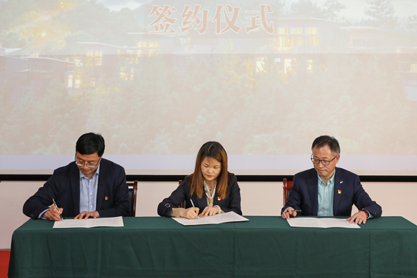 仪式上,与会嘉宾一同为“助残共富实践基地”和“助残共富学堂”进行了揭牌并为志愿服务团授旗。威尼斯官网经济管理学院、德清县残联、莫干山镇政府共同签署了党建联建协议和“校地合作 助残共富”合作协议。